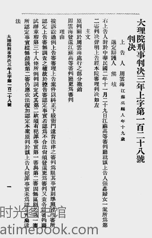 1-上字第一百二十八号_周云海对于江苏高等审判厅就该上告人强奸妇女案件所为第二审判决声明上告一案
