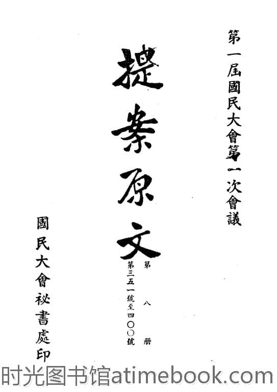 | 网盘路径:/时光图书馆珍藏系列/书籍文件/老图书/《第一届国民大会第一次会议提案原文_第8册》电子版合集.db | ||