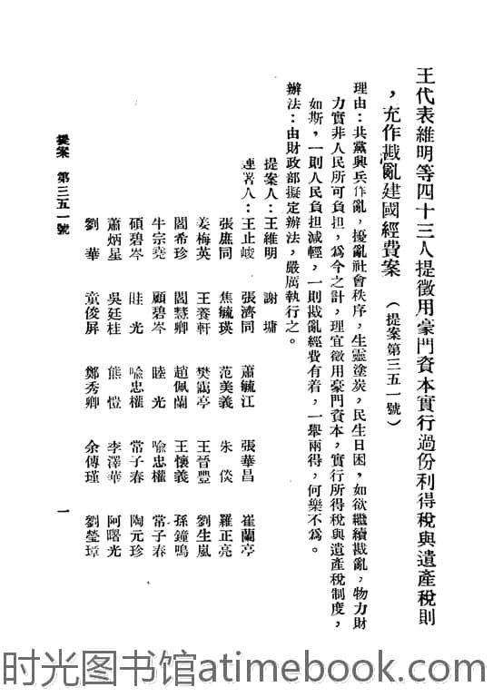 2-351_王代表维明等提_征用豪门资本实行过份利得税与遗产税则充作戡乱建国经费案