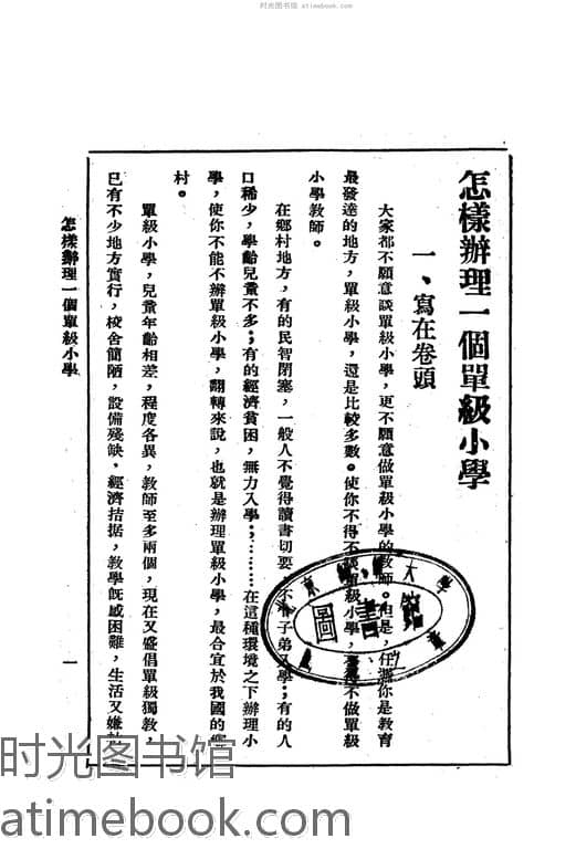 | 网盘路径:/时光图书馆珍藏系列/书籍文件/老图书/《怎样办理一个单级小学》电子版合集.db | ||