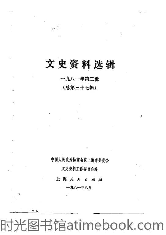 | 网盘路径:/时光图书馆珍藏系列/书籍文件/老图书/《上海文史资料选辑_第37辑》电子版合集.db | ||