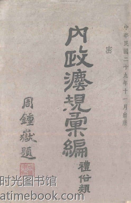 | 网盘路径:/时光图书馆珍藏系列/书籍文件/老图书/《内政法规汇编_礼俗类》电子版合集.db | ||