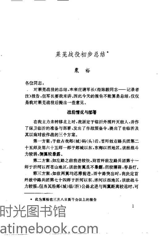 | 网盘路径:/时光图书馆珍藏系列/书籍文件/老图书/《莱芜战役纪实》电子版合集.db | ||
