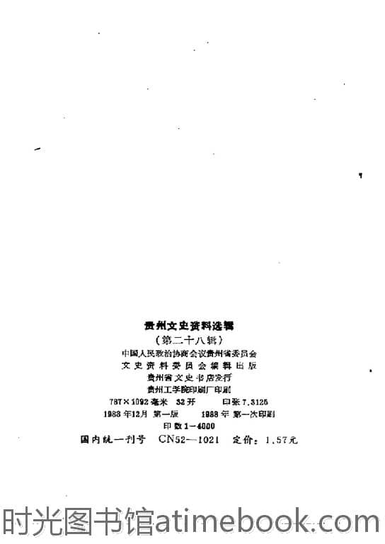 | 网盘路径:/时光图书馆珍藏系列/书籍文件/老图书/《贵州文史资料选辑_第28辑》电子版合集.db | ||