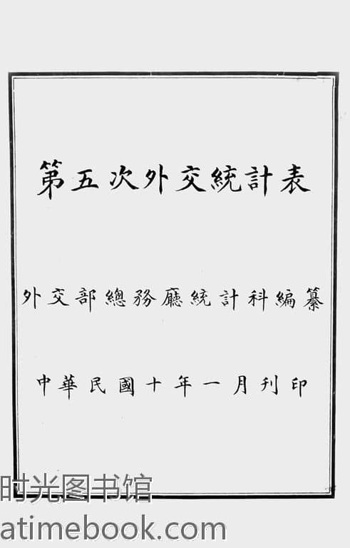 | 网盘路径:/时光图书馆珍藏系列/书籍文件/老图书/《第五次外交统计表》电子版合集.db | ||