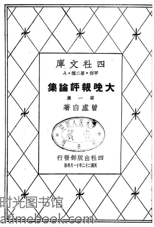| 网盘路径:/时光图书馆珍藏系列/书籍文件/老图书/《大晚报评论集》电子版合集.db | ||
