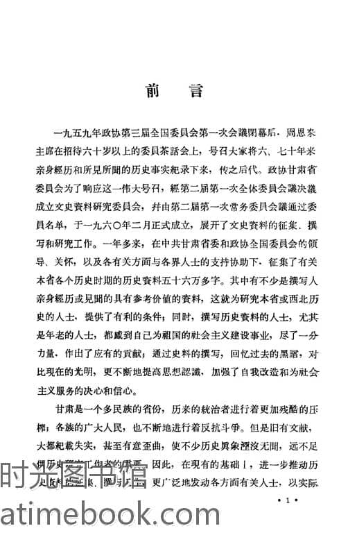 | 网盘路径:/时光图书馆珍藏系列/书籍文件/老图书/《甘肃文史资料选辑_第1辑》电子版合集.db | ||