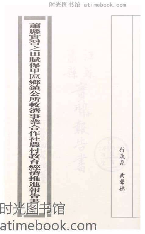 | 网盘路径:/时光图书馆珍藏系列/书籍文件/老图书/《萧县实习之田赋保甲乡镇公所救济事业合作社农村教育经济推进报告书》电子版合集.db | ||