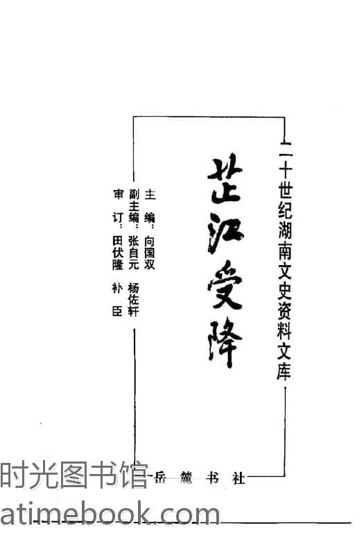 | 网盘路径:/时光图书馆珍藏系列/书籍文件/老图书/《20世纪湖南文史资料文库_·芷江受降》电子版合集.db | ||