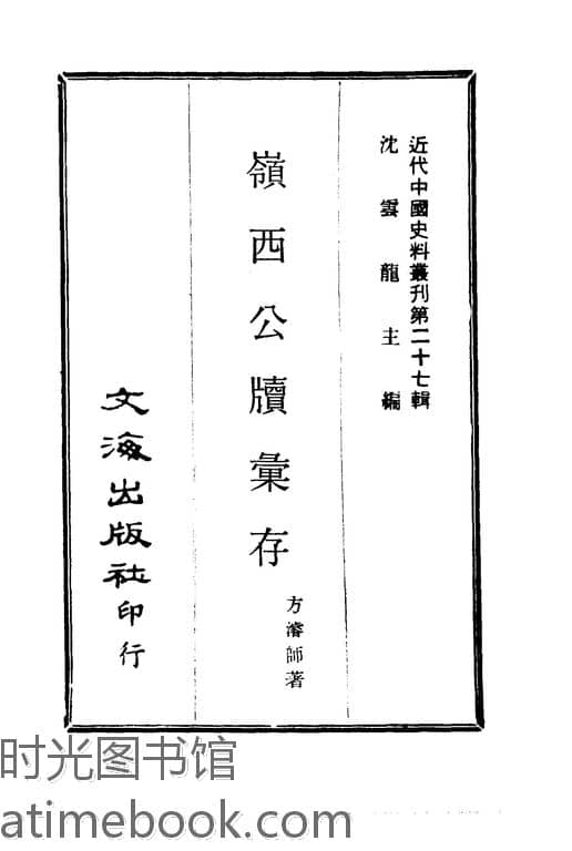 | 网盘路径:/时光图书馆珍藏系列/书籍文件/老图书/《岭西公牍汇存》电子版合集.db | ||