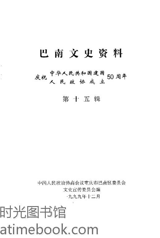网盘路径:/时光图书馆珍藏系列/书籍文件/老图书/《巴南文史资料_第15辑》电子版合集.db