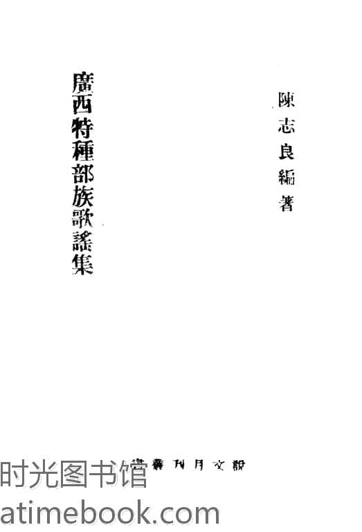 | 网盘路径:/时光图书馆珍藏系列/书籍文件/老图书/《广西特种部族歌谣集》电子版合集.db | ||