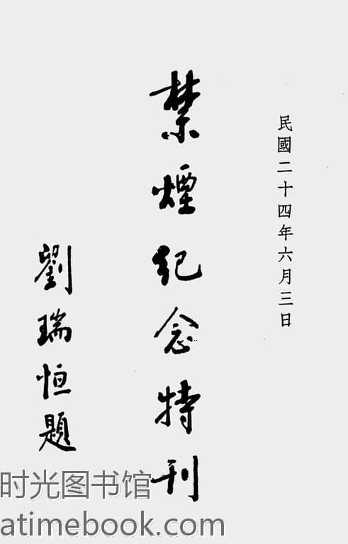 | 网盘路径:/时光图书馆珍藏系列/书籍文件/老图书/《禁烟纪念特刊》电子版合集.db | ||