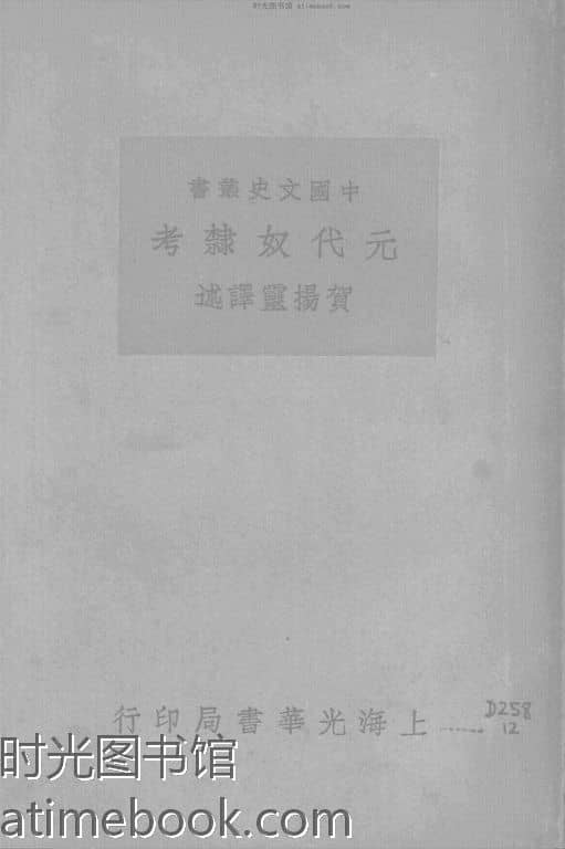 | 网盘路径:/时光图书馆珍藏系列/书籍文件/老图书/《元代奴隶考》电子版合集.db | ||
